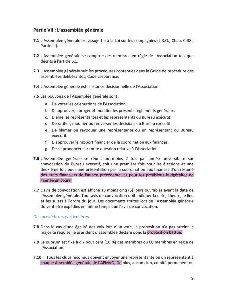 Règlements généraux